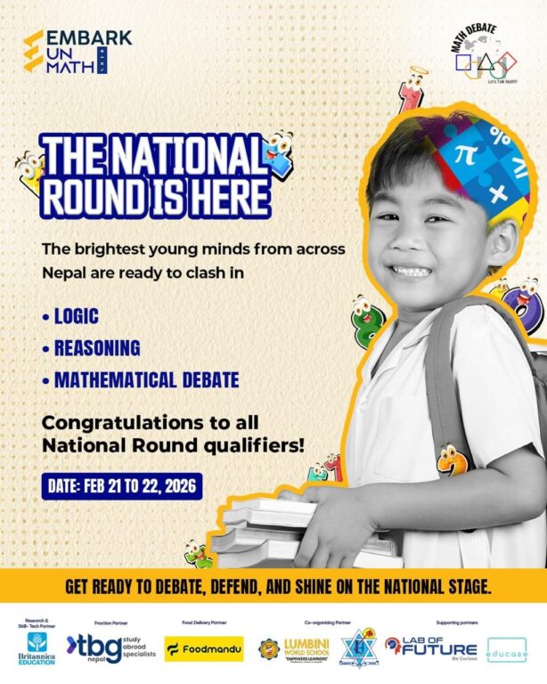 काठमाडौँः नेपालमा शैक्षिक प्रतिस्पर्धाको स्वरूप परिवर्तन हुँदै आएको छ । ग्लोबल म्याथ डिबेट लिग (GMDL)ले झापा र चितवनपछि लुम्बिनी क्षेत्रीय