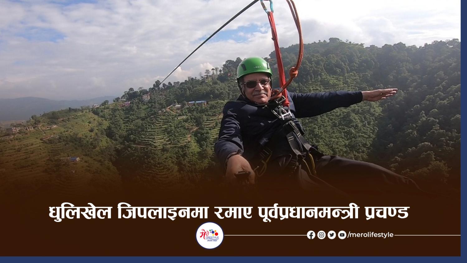 धुलिखेल जिपलाइनमा रमाए पूर्वप्रधानमन्त्री प्रचण्ड