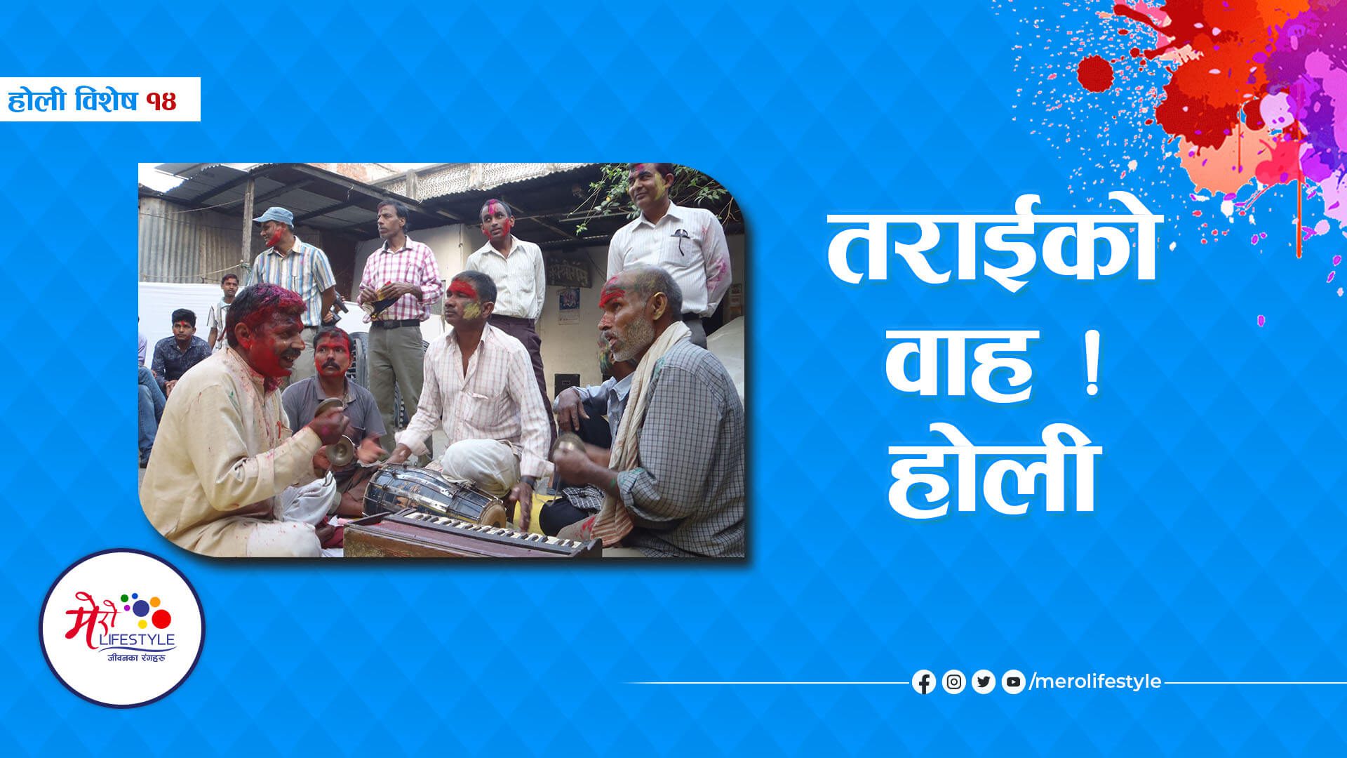 तराईमा होलीको दिन आँगन, खेत, सडक र छत सबै तिर रङ्गमय हुन्छ । ‘दुई किलो मासु किन्छु, साथीभाइ भेला पार्छु, पानी पटाउँदै र मासु च्यूराको स्वाद लिँदै खेतमै मनाउने हो,’ मोरङको जहदाका तरकारी व्यवसायी वीरेन्द्र मण्डल भन्छन्, ‘जहाँ र जसरी भए पनि रमाइलो गर्ने हो ।’