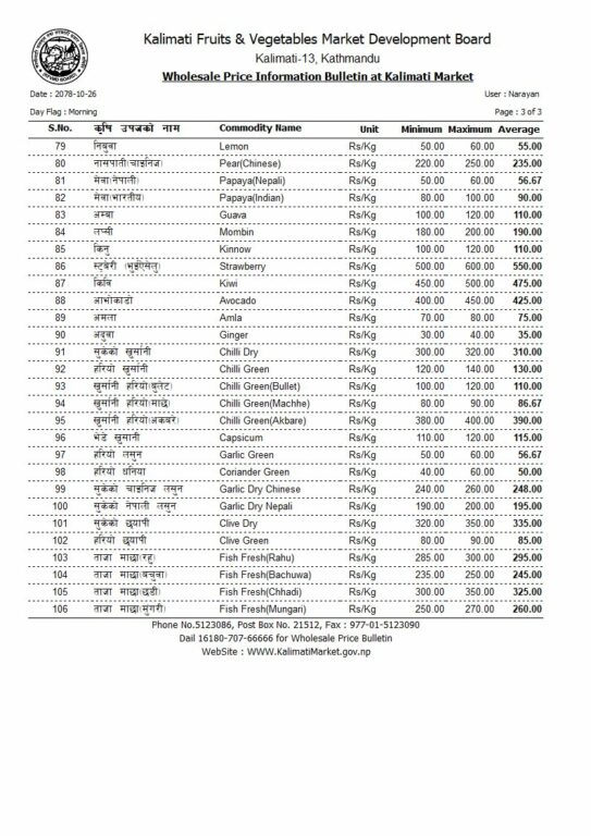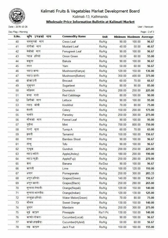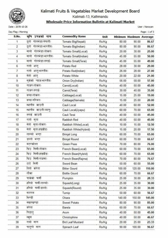 हेर्नुहोस् आजको तरकारी र फलफूलको मूल्य [सूची]