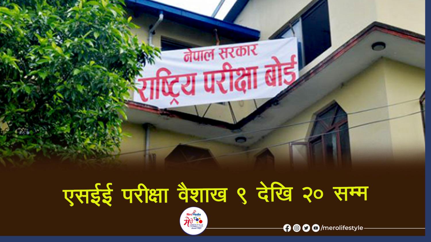 माध्यमिक शिक्षा परीक्षा (एसईई) वैशाख ९ गतेदेखि २० गतेसम्म हुने भएको छ । बुधबार बसेको राष्ट्रिय परीक्षा बोर्डको बैठकले वैशाख ९ देखि २० गतेसम्म परीक्षा सञ्चालनको निर्णय गरेको राष्ट्रिय परीक्षा बोर्डका अध्यक्ष महाश्रम शर्माले मेरोलाइफस्टाइल डटकमलाई जानकारी दिए ।