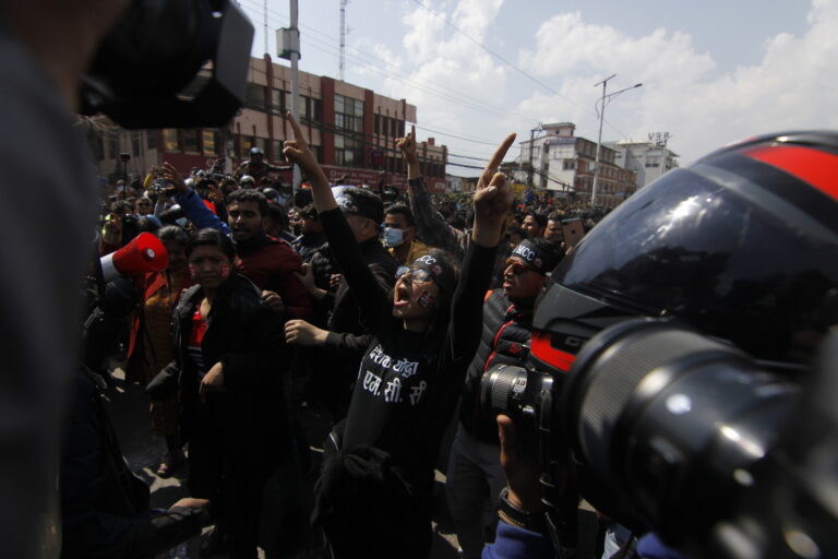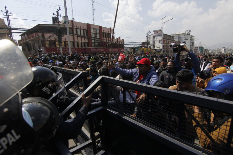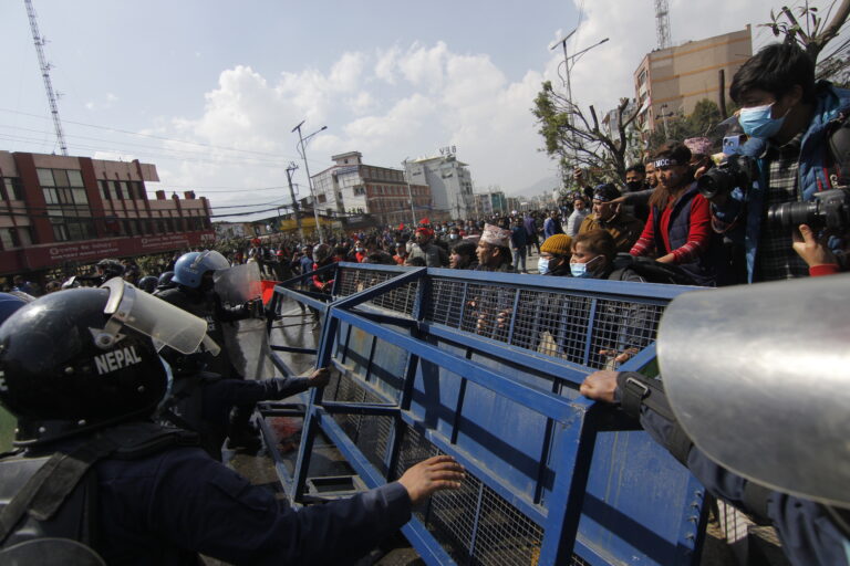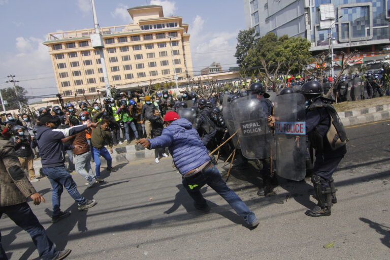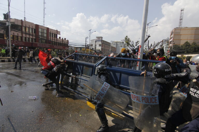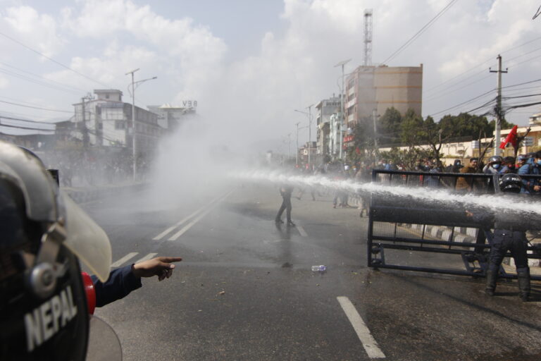 प्रदर्शनलाई मथ्थर बनाउन प्रहरीले पानीको सहायता लिएको छ । प्रहरीमाथि पानीको फोहोरा प्रहार गरिएको छ ।