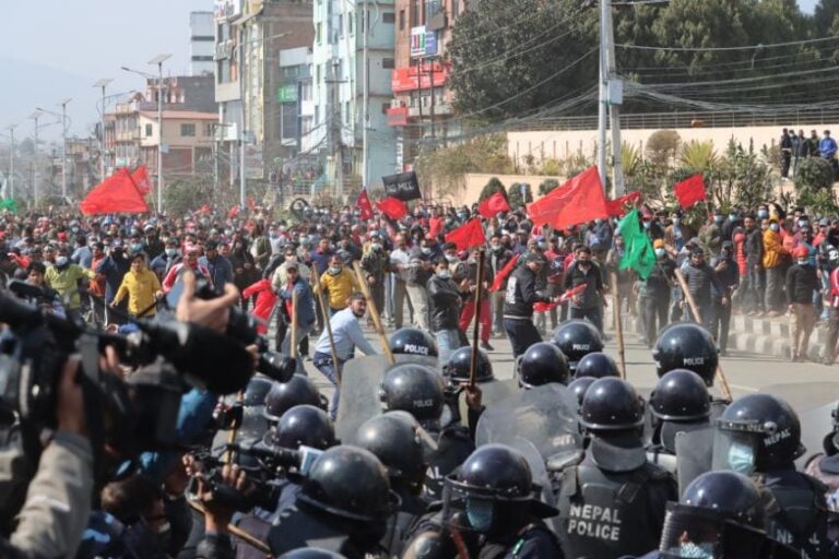 उनीहरूले चर्का नाराबाजी गर्दै निषेधित क्षेत्रमा प्रदर्शन थालेपछि प्रहरी हस्तक्षेप भएको छ भने सो क्रममा दर्जनौँ घाइते भएको बताइएको छ । प्रदर्शन गर्नेमा सत्तारुढ नेकपा माओवादी केन्द्र र एकीकृत समाजवादी पार्टीको भ्रातृ संगठनसहित साना कम्युनिस्ट घटकहरू पनि रहेका छन् ।