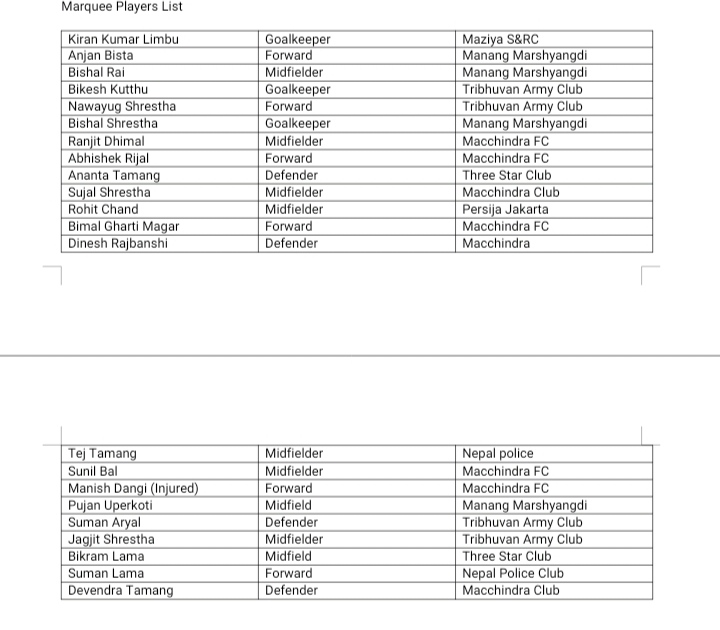 आयोजन नेपाल स्पोर्टस एन्ड इभेन्ट म्यानेजमेन्टले आइतबार सहभागी क्लबलाई मनोनित २२ मार्की खेलाडीको नाम पठाएको हो ।