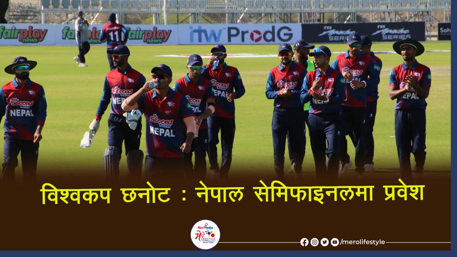 ओमानको अल अमेरत क्रिकेट मैदानमा भएको खेलमा क्यानडालाई जितेसँगै नेपालले सेमिफाइनलको यात्रा तय गरेको छ ।समूह ‘बी’बाट समूह विजेता बनेको नेपालले अब फाइनलमा प्रवेश गर्नका लागि युएईसँग खेल्नेछ । युएई समूह ‘ए’ बाट सेमिफाइनलमा पुगेको हो ।