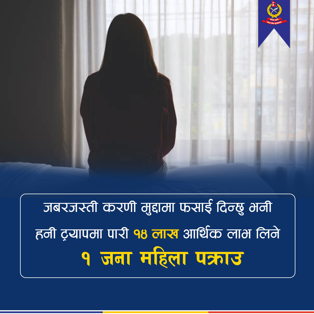हनी ट्रयापमा पारी आर्थिक लाभ (एक्सटर्सन) लिएको कसूरमा १ जना महिला पक्राउ