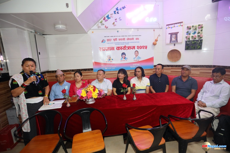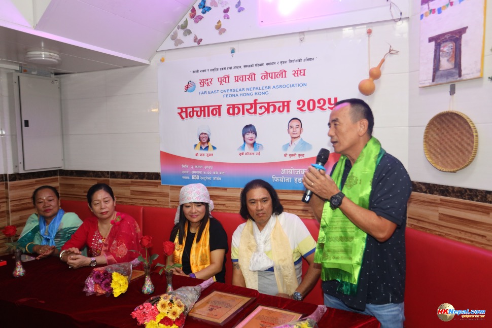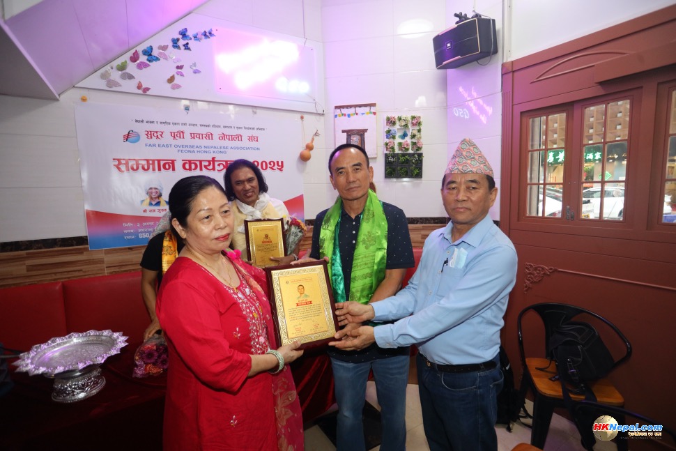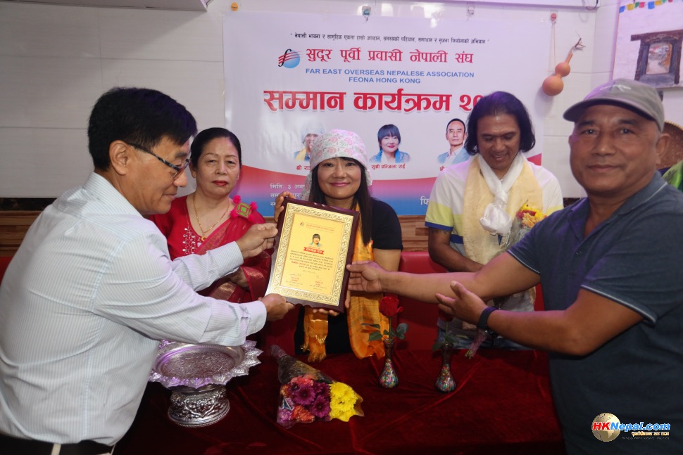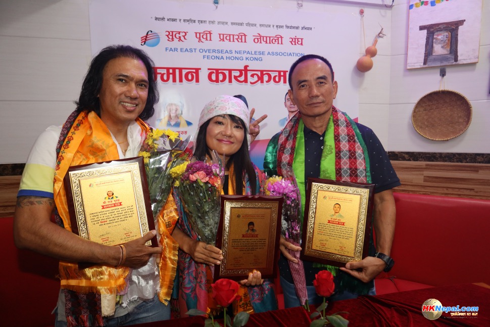 सुदूर पूर्वी प्रवासी नेपाली संघ, हङकङले तेक्वान्दो खेलमा नवौं डान हासिल गर्न सफल तुलसी गुरुङ र हालै सगरमाथा आरोहणमा सफलता प्राप्त गरेका राज गुरुङ तथा एन्जिला राईलाई विशेष सम्मान प्रदान गरेको छ ।