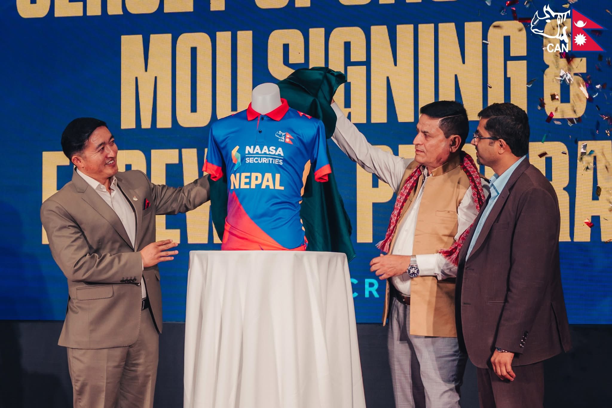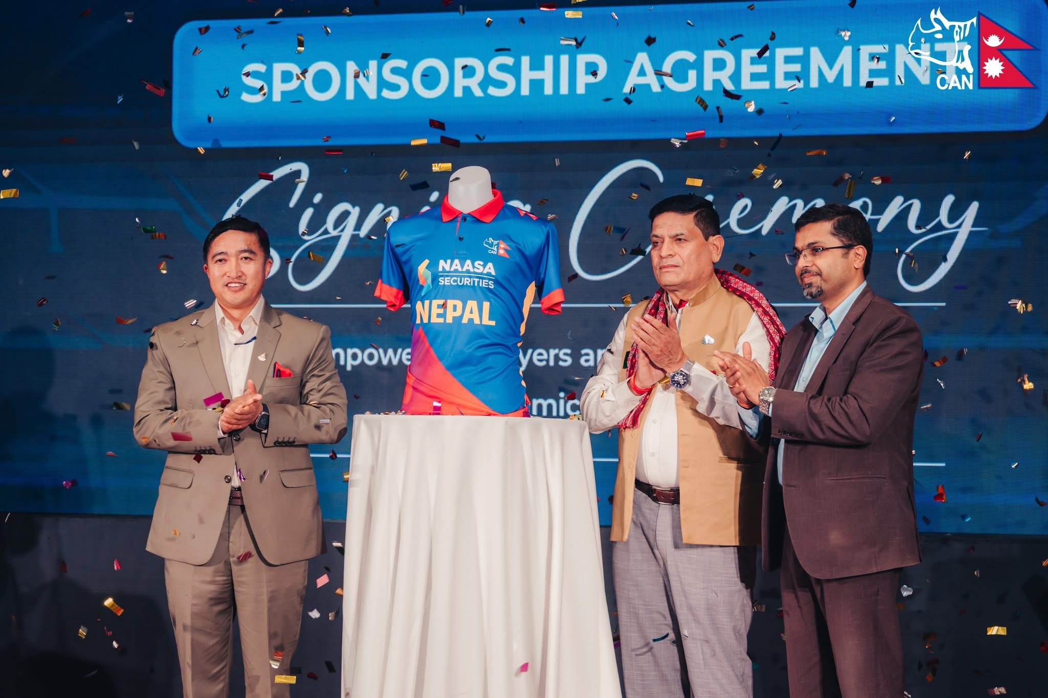 नेपाली राष्ट्रिय क्रिकेट टोलीको नयाँ जर्सी सार्वजनिक गरिएको छ। आइतबार काठमाडौँमा एक कार्यक्रमबीच नेपाल क्रिकेट संघ (क्यान) र प्रमुख प्रायोजक नासा र सेक्युरिटिजबीच प्रायोजन सम्झौता भएर नयाँ जर्सी सार्वजनिक गरिएको हो ।