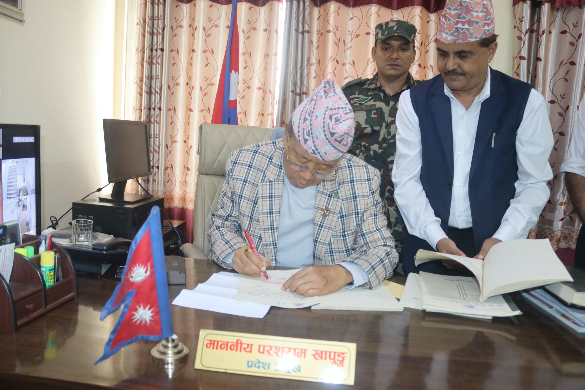 कोशी प्रदेशका माननीय प्रदेश प्रमुख परशुराम खापुङ्ज्यूद्वारा विधेयक, २०८२” प्रमाणीकरण ।