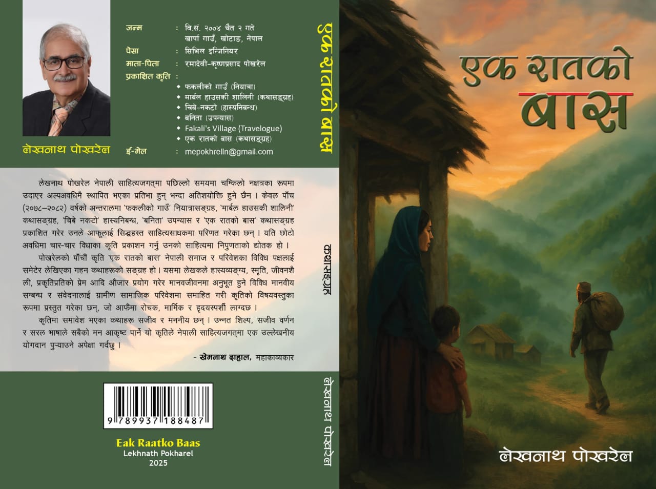 साहित्यकार लेखनाथ पोखरेलको नवीनतम् कृति ‘एक रातको बास’ पाठकमाझ आएको छ ।