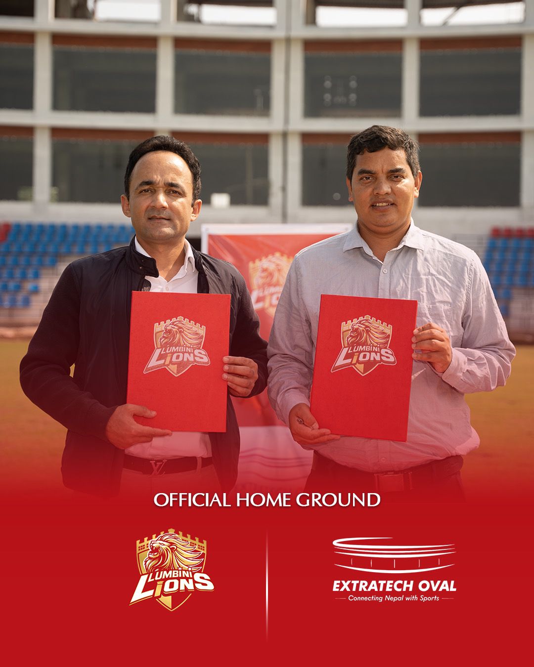 भैरहवा, 9 कार्तिक: लुम्बिनी लायन्स र भैरहवास्थित एक्स्ट्राटेक ओभल क्रिकेट मैदानबीच दीर्घकालीन साझेदारी सम्झौता भएको जानकारी गराउन चाहन्छौं। उक्त सम्झौता पत्रमा एक्स्ट्राटेक ओभलका तर्फबाट श्री बिनोद कुँवर र लुम्बिनी लायन्सका तर्फबाट अध्यक्ष श्री ईश्वर जिसीले हस्ताक्षर गर्नुभएको छ। यो सम्झौताका माध्यमबाट नेपालको खेल पूर्वाधार विकासमा एउटा ऐतिहासिक कदम चालिएको हामी विश्वास गर्छौं। सम्झौताअनुसार एक्स्ट्राटेक ओभल अब लुम्बिनी लायन्सको आधिकारिक घरेलु मैदान तथा तयारी केन्द्र हुनेछ।