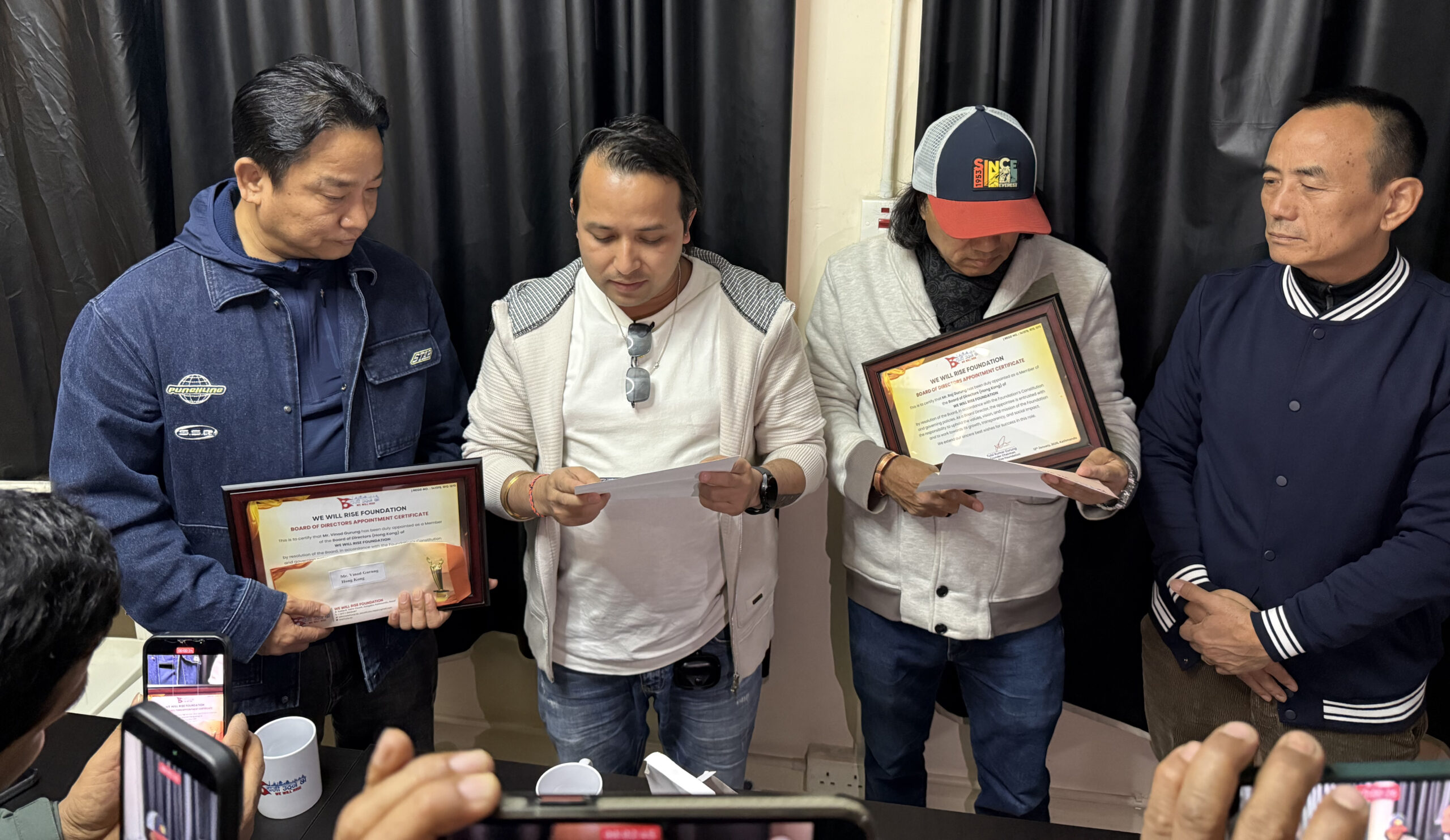 फाउण्डेसनका संस्थापक अध्यक्ष तुलसी गुरुङले सोमबार दुईलाई हङकङमा आयोजित एक समारोहबीच नियुक्ति पत्र हस्तान्तरण गरेका हुन्। उक्त कार्यक्रममा बोर्डका निर्देशक निर्मल श्रेष्ठ र सुरज गुरुङसहित हङकङस्थित पत्रकारहरूको उपस्थिति रहेको थियो।