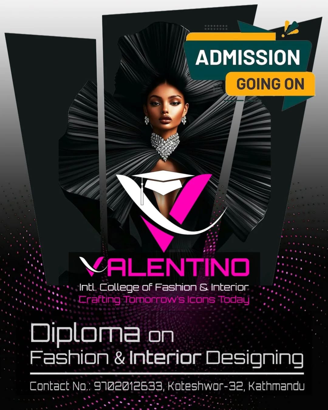 काठमाडौंको कोटेश्वरमा फेसन तथा इन्टेरियर डिजाइनिङ कलेज सञ्चालनमा आएको छ । करिब एक दशकदेखि फेसन डिजाइनिङको क्षेत्रमा काम गरिरहेकी सुक्निता चौलागाईंसहितको टिमले ‘भ्यालेन्टिनो इन्टरनेसनल कलेज अफ फेसन एन्ड इन्टेरियर’ कलेज सञ्चालनमा ल्याएको हो । सन र इन्टेरियर डिजाइनमा करिअर बनाउन चाहने युवायुवतीलाई सर्वसुलभ रूपमा व्यावसायिक ज्ञान र सीप प्रदान गर्ने उद्देश्यले कलेज सञ्चालनमा ल्याइएको सञ्चालिका सुक्निता चौलागाईंले जानकारी दिइन् । यसका लागि एकवर्षे डिप्लोमा कोर्स तयार पारिएको छ ।