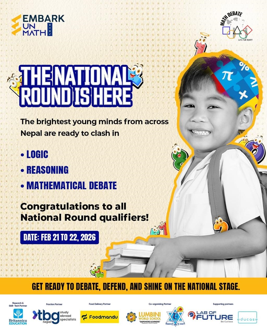 क्षेत्रीय चरणबाट छनोट भएका विद्यार्थीहरूले फेब्रुअरी २१ र २२ मा ‘द प्लाजा’ मा हुने राष्ट्रिय प्रतिस्पर्धामा भाग लिनेछन् । मूल्याङ्कन संस्कृतिमा नयाँ संकेतः यस लिगको मुख्य महत्व यसको कार्यविधिमा छ । जहाँ परम्परागत प्रणालीले अन्तिम उत्तरलाई प्राथमिकता दिन्छ, त्यहाँ यस प्रतियोगिताले उत्तरको औचित्य र तर्कलाई महत्व दिएको छ। झापा, चितवन र लुम्बिनीपछि अब पोखरा र काठमाडौंमा आयोजना हुँदै प्रतियोगिता राष्ट्रिय शैक्षिक सर्किटका रूपमा विस्तार हुँदैछ । अब प्रश्न केवल गणना गर्न सक्ने क्षमताको होइन, आफ्नो तर्क विश्वस्त रूपमा प्रस्तुत गर्न सक्ने क्षमताको पनि हो । यही सोचका साथ गणित बहस लिग अघि बढिरहेको छ ।